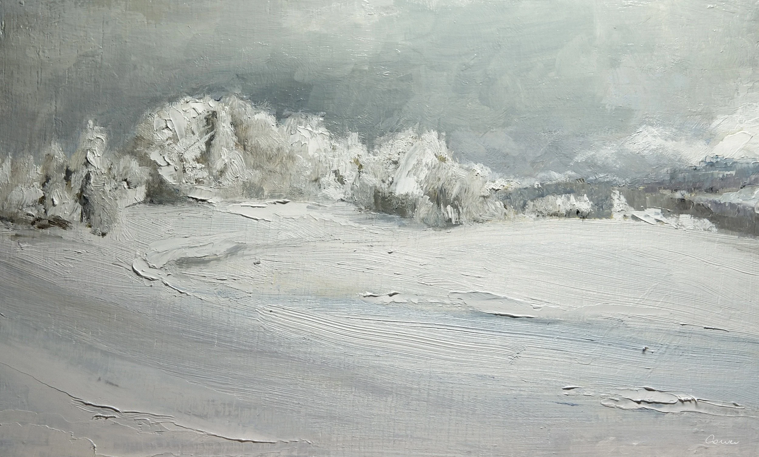 Wintery Aeugst am Albis | oil and cold wax on panel | 30 x 60 | SOLD