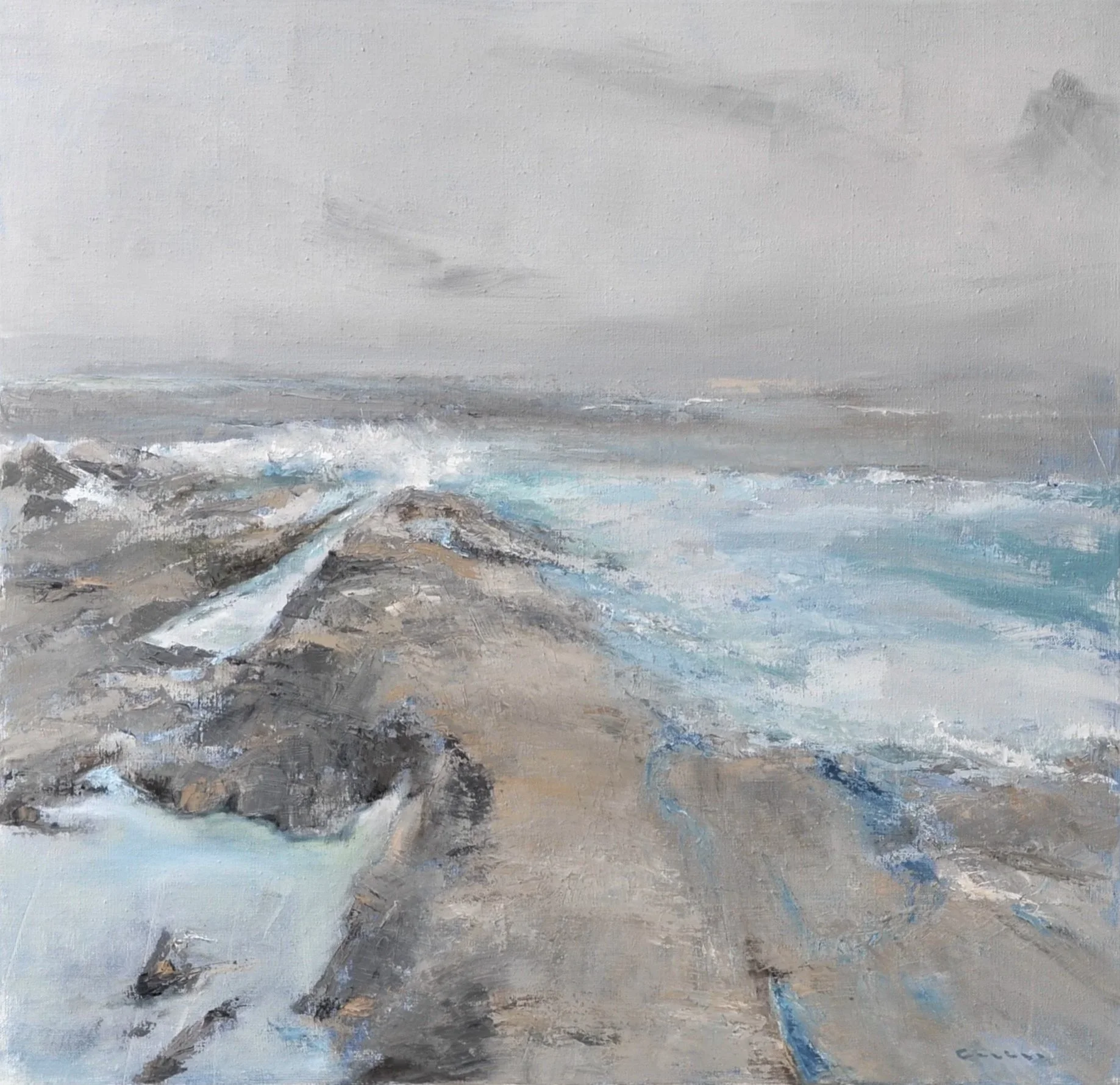 Coastline | oil and cold wax on course linen | 70 x 70 cm | available