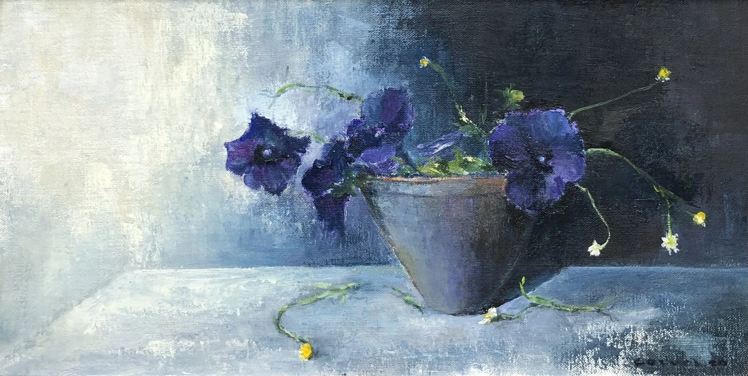 Petunia and a few chamomila | oil and cold wax on linen | 30 x 60 cm | framed | commission