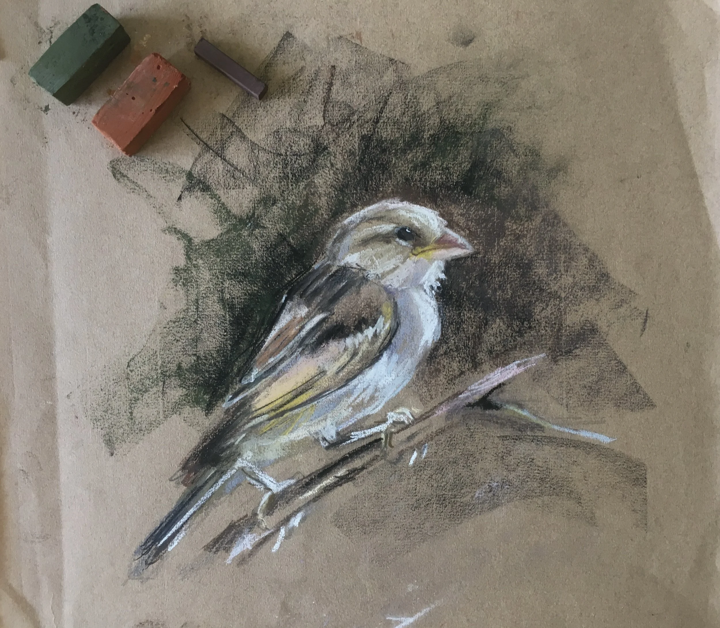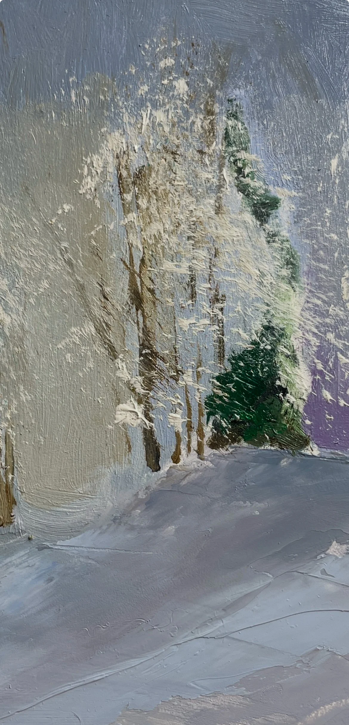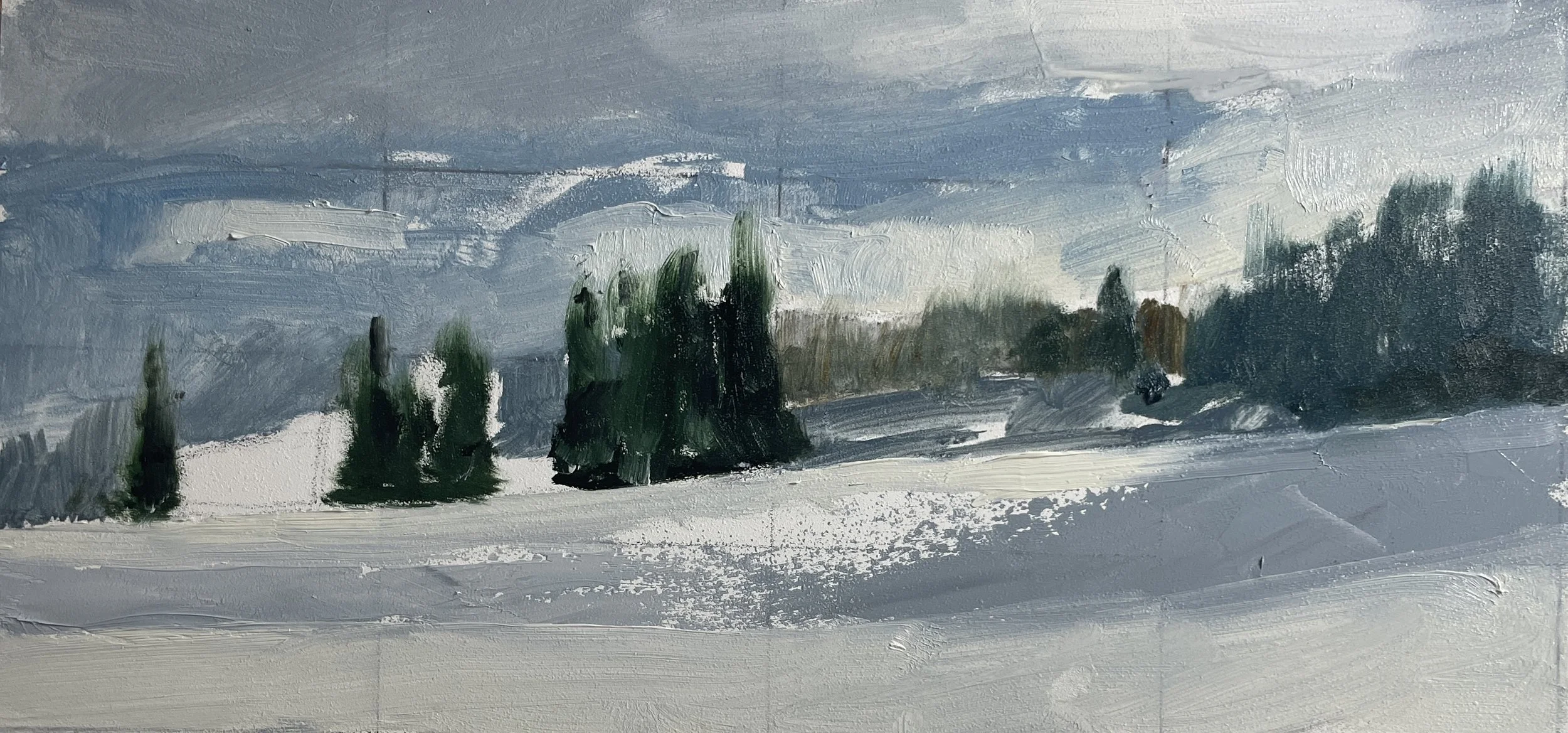 Oil and cold wax on panel winter landscape, 15 minutes study