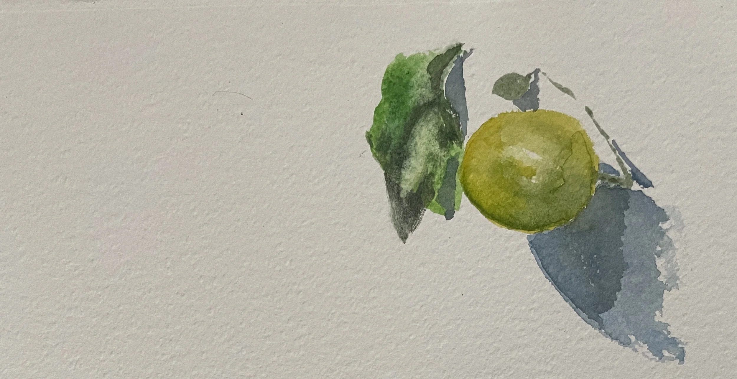 Study of a lemon with leaf in aquarel on 300 gr Canson course grain aquarel paper